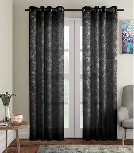 Jvin Fab Transparent Designer Printed Polyester Sheer Door Eyelet Curtains Living Room Hotel Resort Home Decor Set Of 2 8 Ft Black